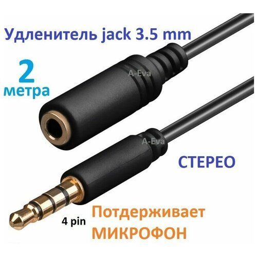 НАЙТИ ВЫГОДНЕЕ - Удлинитель для наушников и гарнитуры 2м, аудио шнур 3.5 Jack, 4 pin, штекер-гнездо для микрофона