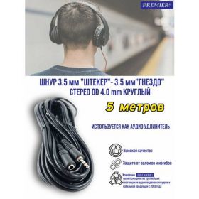 Найти - Шнур 3.5 мм штекер - 3.5 мм гнездо стерео OD4.0мм круглый 5.0 метров (удлинитель для наушников)