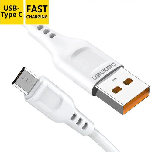 НАЙТИ ВЫГОДНЕЕ - Кабель USB Type C с поддержкой быстрой зарядки и передачи данных Denmen / Зарядка для телефона / Провод type c, 2,4А, 1 метр, белый