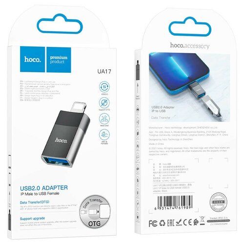 Найти - Переходник адаптер, iPhone lighting на USB, HOCO, USB 2.0 , UA17, черный