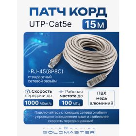 НАЙТИ ВЫГОДНЕЕ - Патч-корд 15 м Голд Мастер UTP 5е RJ45 интернет кабель 15 метров LAN сетевой Ethernet патчкорд серый (NA102--15M), контакты blade с позолотой 03FU