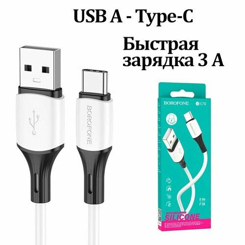 Найти - Кабель силиконовый BOROFONE BX79 USB A - Type-C 1 м Белый, Быстрая зарядка 3A