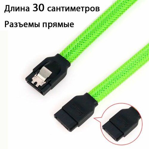 Найти - Кабель SATA III 6Gb/s салатовый в оплетке 30см прямой