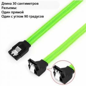 Найти - Кабель SATA III 6Gb/s салатовый в оплетке 30см с углом 90 градусов