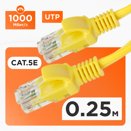 Патч-корд UTP Cablexpert жёлтый категория 5e длина 0.25 метра PP12-0.25M/Y - это высококачественный кабель, предназначенный для соединения сетевого оборудования.