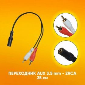 Найти - Стерео переходник аудио aux Jack 3.5 mm разъем мама на 2 RCA штекер папа 25 см / для dvd, адуиосистемы