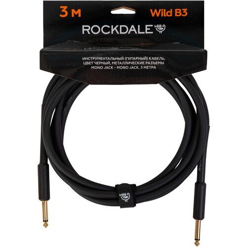 ROCKDALE Wild B3 Инструментальный (гитарный) кабель, цвет черный, металлические разъемы mono jack - mono jack, 3 метра