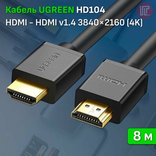 НАЙТИ ВЫГОДНЕЕ - UGREEN Кабель Ugreen HD104 Male To Male 4K@30Hz HDMI 1.4 8.0м 10178 черный