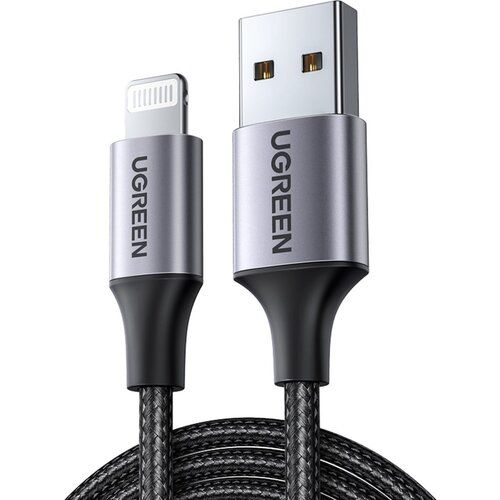 НАЙТИ ВЫГОДНЕЕ - Кабель UGreen US199 USB 2.0 - Lightning, длина 1.5 м, 1 шт., черно-серый