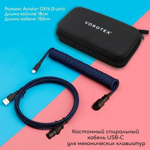 Кабель Type-C к USB поддерживает безопасную, быструю зарядку и скорость синхронизации данных. Спиральный кабель клавиатуры VOROTEX с разъёмом GX16 совместим с большинством механических игровых клавиатур USB-C.