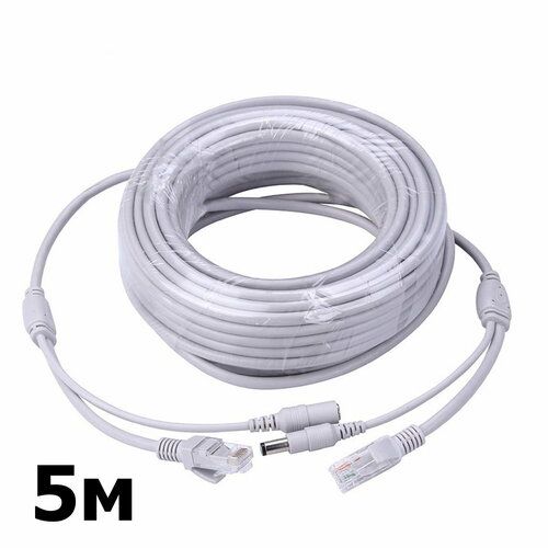 Найти - Кабель 2 в 1 шнур удлинитель питания для ip камеры видеонаблюдения и провод видеокамеры ethernet Cat 5 5м