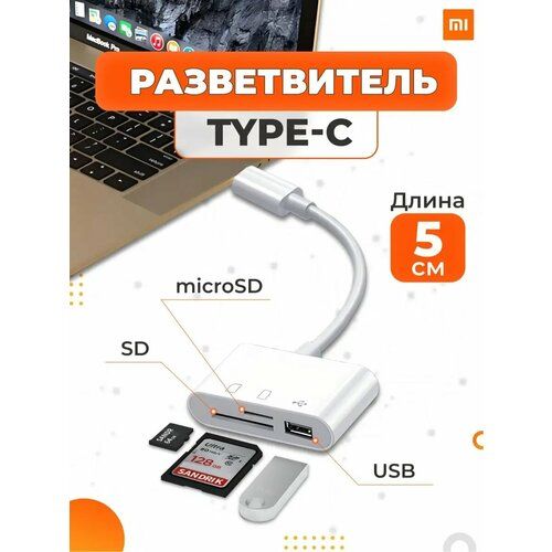 Картридер для MacBook: USB 2.0, для карт памяти SD и Micro SD, переходник, адаптер для Type-C ноутбука и телефона, для подключения к компьютеру устройства через разъемы USB , и карт памяти microSD и SD. Тайп Си хаб для подключения к компьютеру ваших USB флешек и карт памяти микро СД. USB Hub как переходник помогает соединить с компьютером внешний диск, зарядное устройство, пауэрбанк, memory card от телефона или фотоаппарата. Это отличное решение для тех людей, которые пользуются плешками USB и картами для одного ноутбука или сотового телефона с входом Type-C. Можно подключить к компьютеру несколько различных устройств. USB порт тайпси подсоединяется к ноутбуку, компьютеру и даже блоку зарядки, что помогает одновременно восполнять емкость аккумулятора в нескольких смартфонах, переносить файлы с флешки. Гаджет выполнен из качественного пластика. Благодаря этому картридер выдерживает частое использование и механические повреждения. Аксессуар для ноутбука пригодится в любой ситуации. Теперь возможно работать одновременно с флешками, картами, принтером и одновременно заряжать устройства.