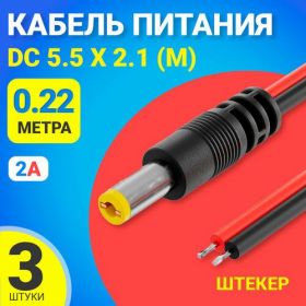 Кабель питания постоянного тока DC 5.5 x 2.1 (M) GSMIN JS04 длина провода 22 см 2А, 3 штуки (Черный)