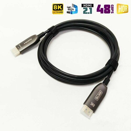 Самый продвинутый оптический HDMI 2.1 кабель с поддержкой 8K. Этот кабель для самых требовательных клиентов и самых серьезных задач. Поддерживает все спецификации стандарта HDMI 2.1: 8K с частотой до 60Hz, 4K и 3D с частотой до 120Hz 3D, 48Gbps, HDR и прочее.