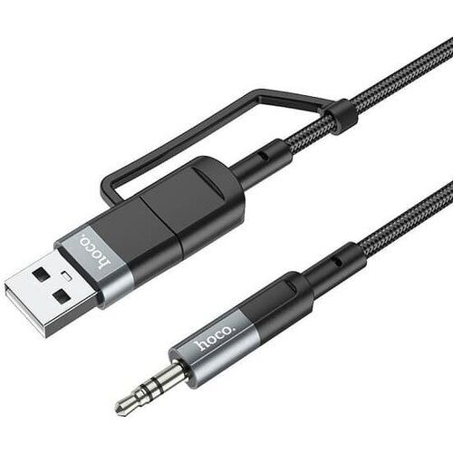 Аудио-Кабель AUX на TYPE-C + USB 2в1 HOCO UPA23 для передачи стерео звука отличного качества. Интерфейс Type-C поддерживает большинство моделей Huawei, Xiaomi, OnePlus и других брендов, поддерживает некоторые модели мобильных телефонов Samsung. Интерфейс Type-C также поддерживает iPad Pro/iPad Air 6, а интерфейс USB поддерживает компьютеры/ноутбуки. Кабель изготовлен из качественных материалов, устойчивых к истиранию и расслоению. Прочные наконечники защищают изделие от повреждений. Длина 1 метр оптимальна и предотвращает запутывание кабеля при соединении двух находящихся рядом устройств. Медный сердечник позволяет передавать стерео звук отличного качества. Характеристики: 1. Длина 1м. Вес: 24г 2. Материал: нейлоновая ткань + алюминиевый сплав 3. Разъём: штекер Type-C/USB на штекер Jack 3,5mm