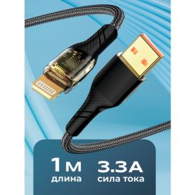 Найти - Кабель USB с быстрой зарядкой и передачей данных, WALKER C950, Lightning, 1м, 3.3А, тканевая оплетка, провод для зарядки телефона, шнур Iphone, черный