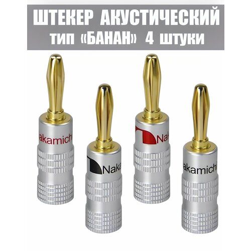 НАЙТИ ВЫГОДНЕЕ - Штекер на акустический кабель 5,5мм тип банан, металл, позолоченный, винт перо, 4 штуки в комплекте
