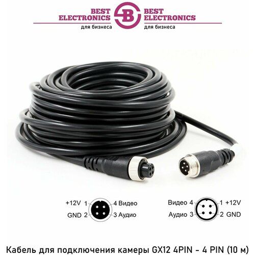 НАЙТИ ВЫГОДНЕЕ - Кабель GX12 4PIN авиационный для подключения камер видеонаблюдений к регистратору 10 метров