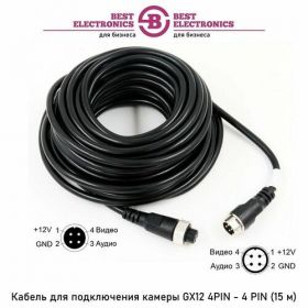 Найти - Кабель GX12 4PIN авиационный для подключения камер видеонаблюдений к регистратору 15 метров