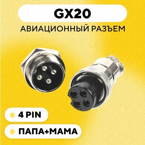 Найти - Авиационный разъем GX20 штекер + гнездо с гайкой для монтажа на корпус (папа + мама, 4 pin)