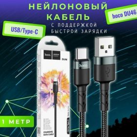 НАЙТИ ВЫГОДНЕЕ - Нейлоновый кабель с поддержкой быстрой зарядки USB/Type-C hoco DU46, 1 метр, 3.0А, черный