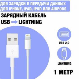 Зарядный кабель для iPhone, iPad или iPod с разъёмом Lightning и USB, 1 метр