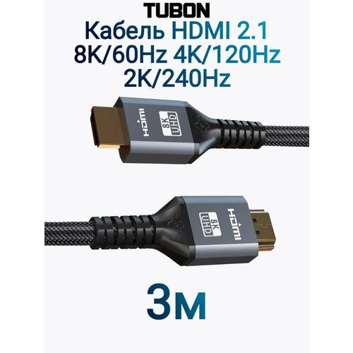 НАЙТИ ВЫГОДНЕЕ - Кабель TUBON HDMI - HDMI 2.1 8K 60Hz, 4k 120Hz, HDR, Нейлоновая оплетка HH01 3м