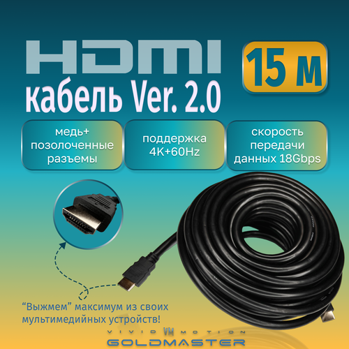 Найти - Кабель GoldMaster HDMI 15м Шнур HDMI - HDMI - 15м Ver 2.0, 26 AWG, CuCS, GoldMaster с позолоченными коннекторами