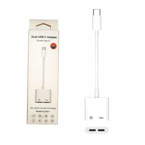 Адаптер 2 в 1 c USB-C на 2 USB-C для одновременной зарядки и подключения наушников, гарнитур и других аудио-устройств.