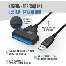 Кабель-переходник USB 3.0 - SATA III 2.5" — это надежное и удобное решение для расширения памяти вашего компьютера. Будь то для домашнего использования или профессиональных целей, этот адаптер для SSD и HDD станет незаменимым аксессуаром для вас.