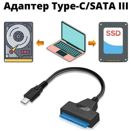 Адаптер/переходник/кабель с Type-C на SATA III для HDD/SSD (жесткого диска) - это высококачественный продукт, который обеспечивает надежное и стабильное подключение жестких дисков к вашему компьютеру или ноутбуку.