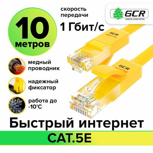 НАЙТИ ВЫГОДНЕЕ - Патч-корд 10м UTP cat.5e 1 Гбит/с RJ45 LAN CCA кабель для интернета контакты 24K GOLD (GCR-LNC500) желтый