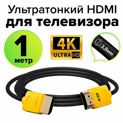 НАЙТИ ВЫГОДНЕЕ - HDMI 2.0 провод 1м GCR Ultra HD 4K 60Hz 3D 18.0 Гбит/с 24K GOLD черный с желтыми коннекторами