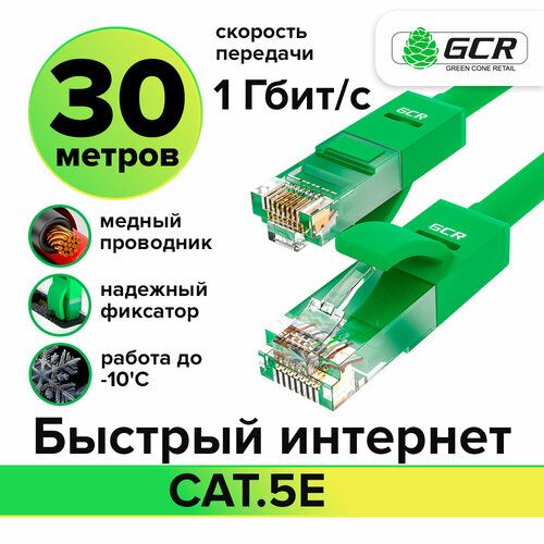 НАЙТИ ВЫГОДНЕЕ - Провод 30м компьютерный UTP cat.5e 1 Гбит/с RJ45 LAN CCA кабель для интернета контакты 24K GOLD (GCR-LNC500) Зеленый