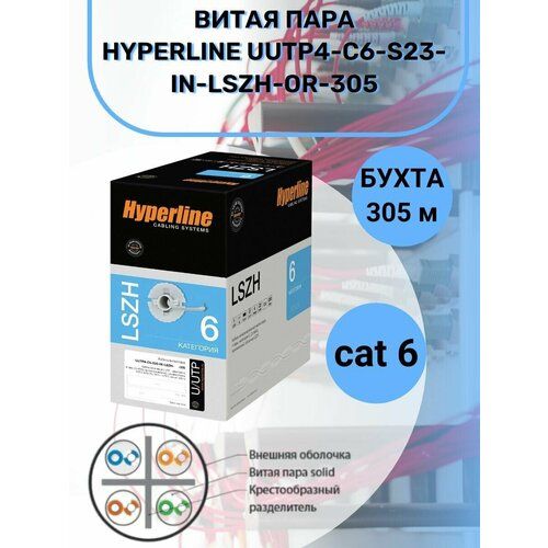 Найти - Витая пара, кабель Hyperline UUTP4-C6-S23-IN-LSZH-OR-305 категория 6