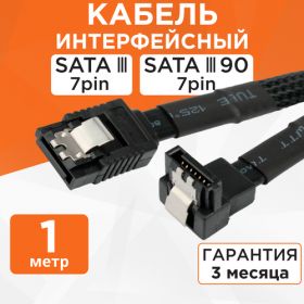 Кабель интерфейсный Sata 3Обратная совместимость с Sata 2Разъёмы: 7pin прямой / 7pin угловойМаксимальная скорость: 6 Гбит/сПроводник: CCSМеталлические защёлкиЦвет: чёрный