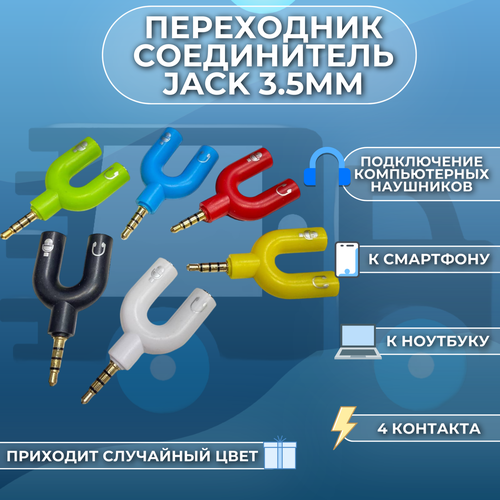 Переходник соединитель jack 3.5mm 3pin 2 x mini jack 3.5mm 4pin предназначен для подключения стандартных компьютерных наушников к мобильным устройствам, таким как смартфоны или планшеты.