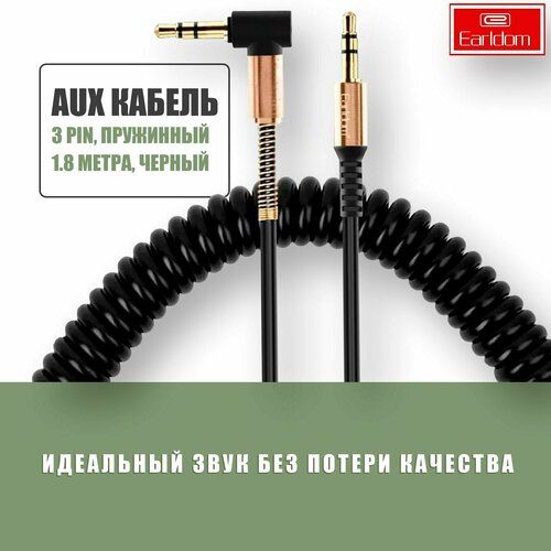 Найти - Aux кабель Jack 3.5mm 3 pin угловой Г-образный пружинный 1,8м / Earldom AUX23 / аукс кабель в машину, для наушников, аудио кабель Джек 3.5мм, Черный