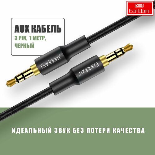Найти - Aux кабель Jack 3.5mm 3 pin 1м / Earldom AUX31 / аукс кабель в машину, для наушников, аудио кабель Джек 3.5мм, Черный