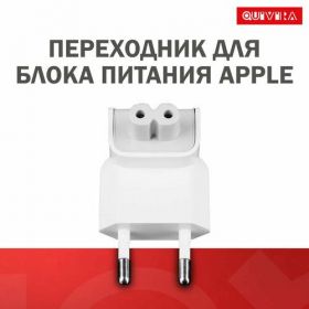 Переходник для блока питания Apple. Преобразует входной разъем блока питания для совместимости с разными устройствами и стандартами розеток. Вилка Apple и белый цвет обеспечивают удобство и гибкость подключения устройств к питанию, соответствуя стилю продукции Apple.