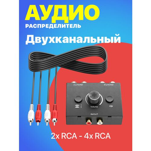 Найти - Двухканальный аудиораспределитель (аудио переключатель) селектор сигнала GSMIN AX-15 2x RCA (тюльпан) - 4x RCA (тюльпан) (Черный)