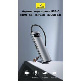 Найти - Переходник Baseus CLARITY 7-Port HUB, вход USB-C, (B00030708811-00) серый