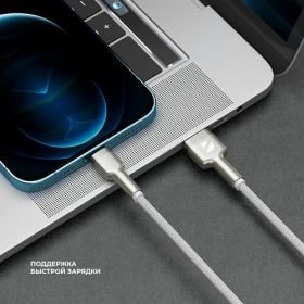 Elite Cable USB – Lightning, от Deppa — это надежный и удобный кабель для быстрой зарядки и передачи данных. Длина кабеля составляет 1 м — провод не будет болтаться и мешать. Кабель обеспечивает быструю зарядку благодаря высокой силе тока, составляющей до 2.4А. Прочная и гибкая нейлоновая оплетка обеспечивает долговечность и защиту от повреждений. Кроме того, скорость передачи данных составляет 480 Мбит/с, что позволяет передавать информацию быстро и без сбоев. Обеспечьте своему устройству надежную и качественную зарядку с Elite Cable от Deppa.