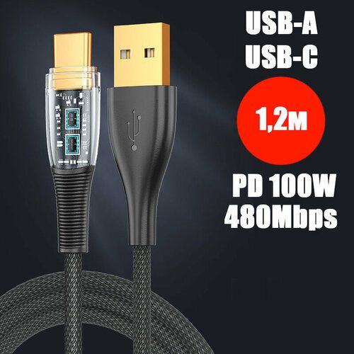 НАЙТИ ВЫГОДНЕЕ - Кабель PALMEXX USB-A to USB-C, PD 100W, длина 1.2м, чёрный