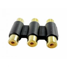 Переходник 3 x RCA гнездо - 3 x RCA гнездо пластик позолоченный.