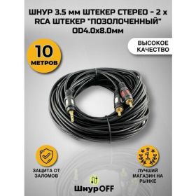 Найти - Шнур 3.5 мм штекер стерео - 2 x RCA штекер позолоченный OD4.0x8.0мм 10.0 метров.