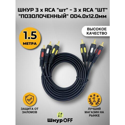 НАЙТИ ВЫГОДНЕЕ - Шнур 3 x RCA шт - 3 x RCA шт позолоченный OD4.0x12.0мм (1.5 метра)