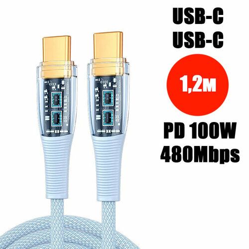 Найти - Кабель PALMEXX USB-C to USB-C, PD 100W, длина 1.2м, голубой
