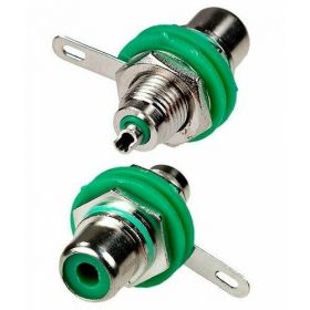 Разъем RCA "гнездо" зеленый на корпус под пайку с изолятором - это высококачественный и надежный компонент для аудио-видеотехники.