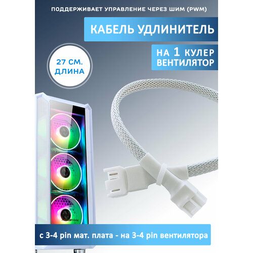 НАЙТИ ВЫГОДНЕЕ - Кабель удлинитель для кулера/вентилятора на 3-4 pin. PWM, 27см, белый в оплетке